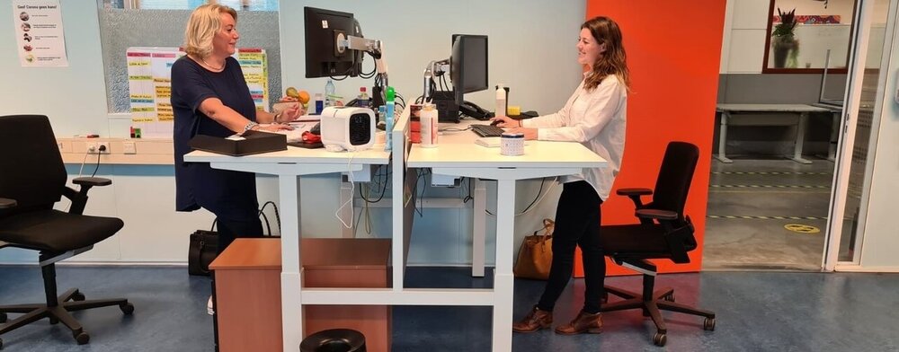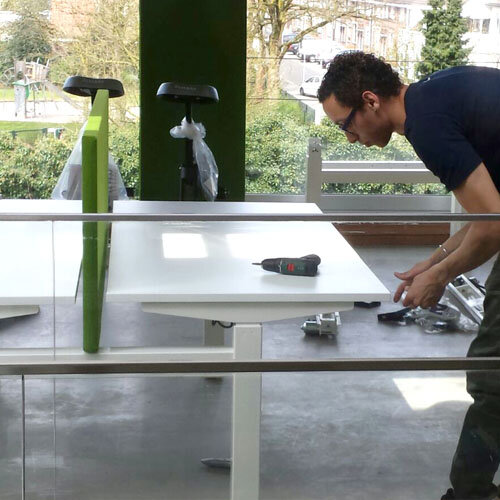 Worktrainer werkt voor de montage van zit-sta bureaus en het verzenden van pakketten samen met Ferm Werk, een sociale werkmaatschappij die mensen met een afstand tot de arbeidsmarkt ondersteunt.