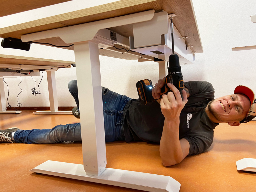 Worktrainer werkt voor de montage van zit-sta bureaus en het verzenden van pakketten samen met Ferm Werk, een sociale werkmaatschappij die mensen met een afstand tot de arbeidsmarkt ondersteunt.