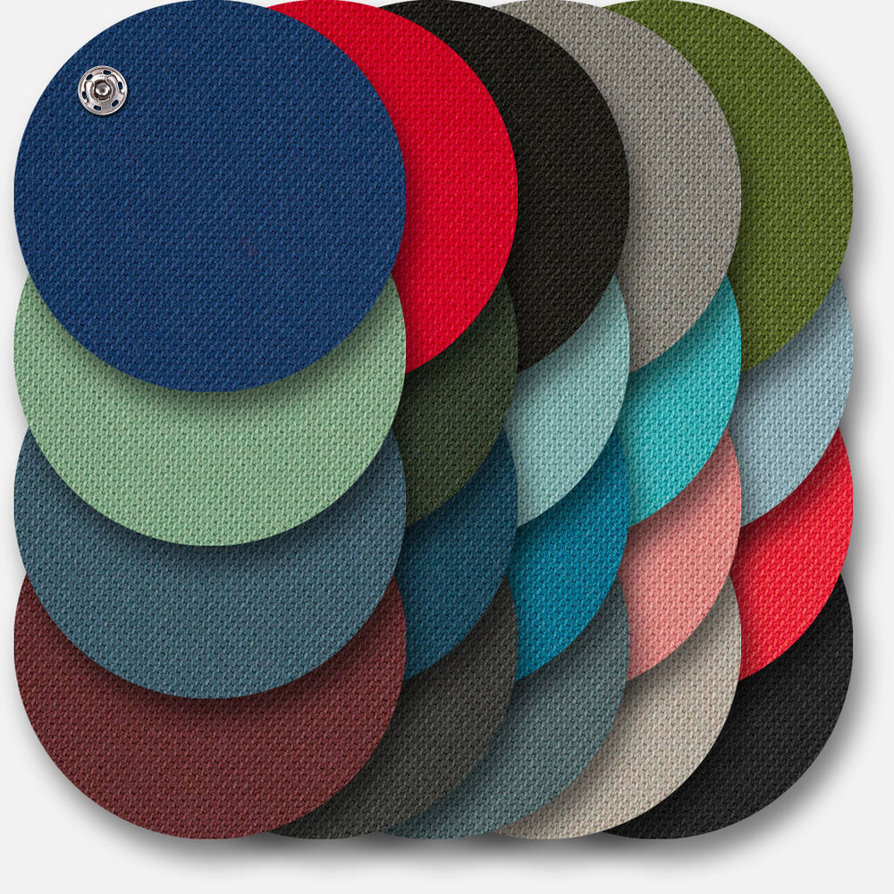 Kleuren: Zwart, Grijs, Rood, Blauw, Groen, Zwartgrijs, Leigrijs, Blauwgrijs, Steengrijs, Pastelblauw, Azuurblauw, Grijsblauw, Staalblauw, Koraalrood, Lichtroze, Aubergine, Donker olijf, Pastelgroen, Turkoois en Pastel Turkoois.