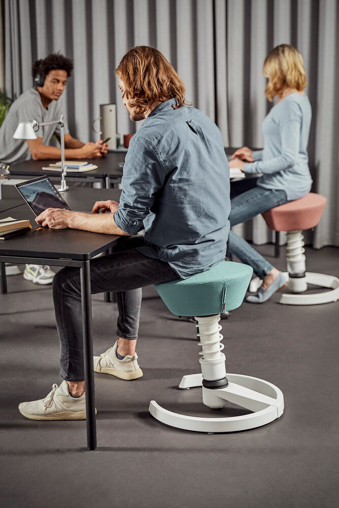 Swoppers worden tegenwoordig steeds vaker voorgesteld als alternatief voor een bureaustoel. Het grote voordeel ligt in de beweging. Naast het feit dat je natuurlijk vrijer bent om te bewegen, ga je dit ook automatisch doen. Onderuitgezakt zitten gaat gewoon niet. Kortom: je wordt constant gestimuleerd een juiste houding met een rechte rug aan te nemen. Werk je de hele dag achter de computer? Juist dan is het extra fijn om een Swopper te gebruiken. Regelmatig zitten op een Swopper maakt je beter bewust van je houding.