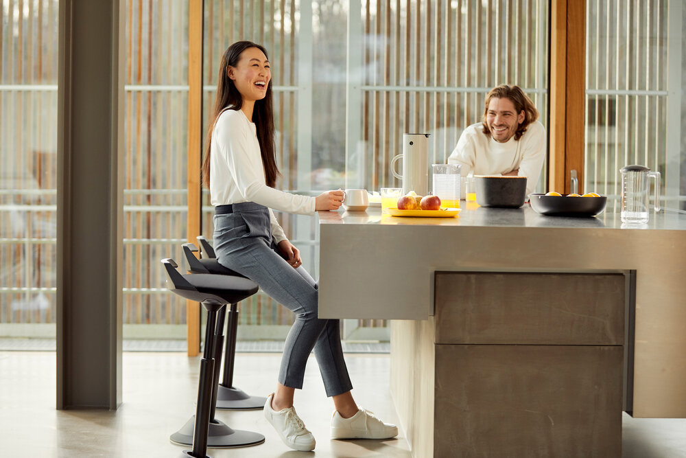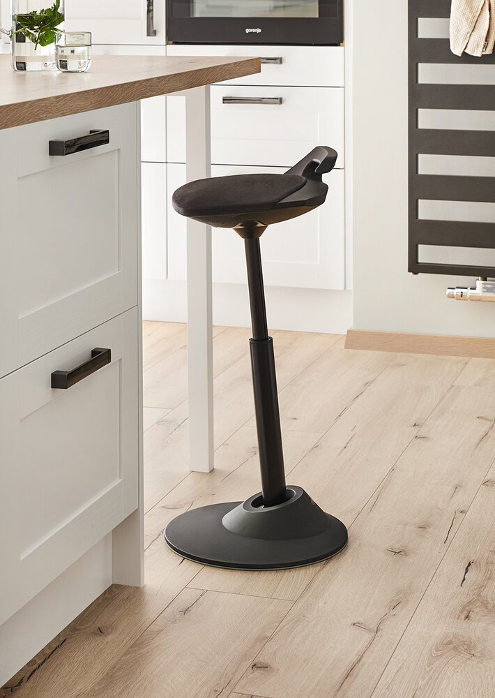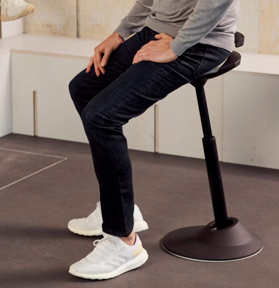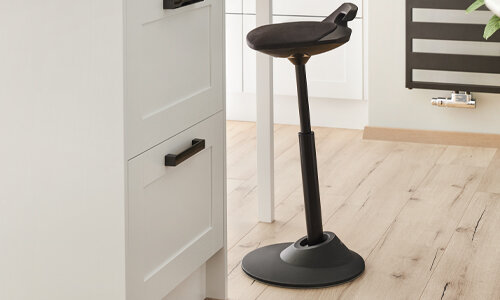 De actieve zit-stakruk Aeris Muvman is een perfecte aanvulling voor bij een in hoogte verstelbare bureau en motiveert de zit-sta-dynamiek. Verkrijgbaar in zwart kunstleer.