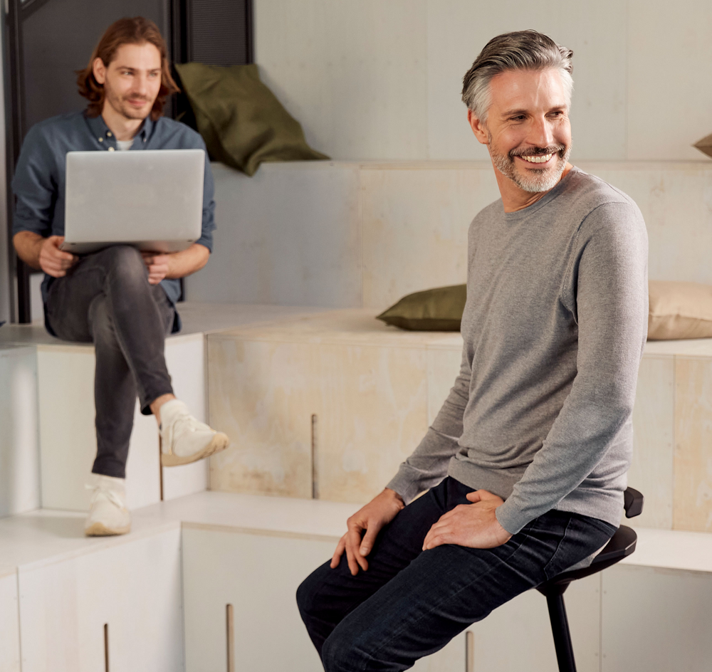 Door Muvman blijft staand werken comfortabel en worden je benen minder belast. Hij wordt gebruikt op de meest uiteenlopende werkplekken zoals in de productie, laboratorium, montage, uitgifte balies en op kantoor. De gigantische hoogteverstelling van de Muvman is uniek. Iedereen kan ermee, onafhankelijk van lichaamslengte en lichaamsbouw, optimaal zitten op zowel een lage als hoge positie. Erg handig als verschillende medewerkers dezelfde Muvman gebruiken.