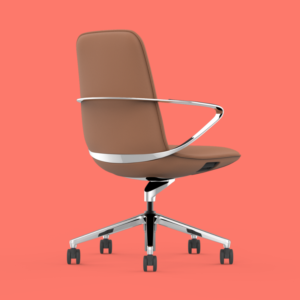 De Amola vergaderstoel in leder combineert stijl en ergonomie. Perfect voor kort overleg of lange werkdagen: altijd comfortabel zitten.
