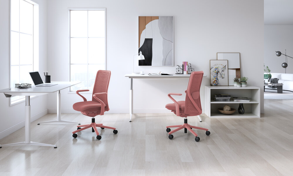 De Poly bureaustoel combineert comfort en design: ergonomisch verstelbaar, stijlvol 3D-breiwerk en duurzaam gebouwd voor intensief gebruik, thuis of op kantoor.