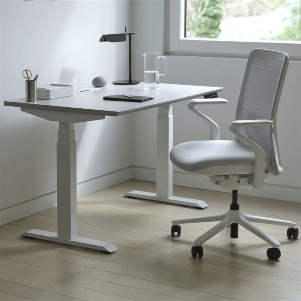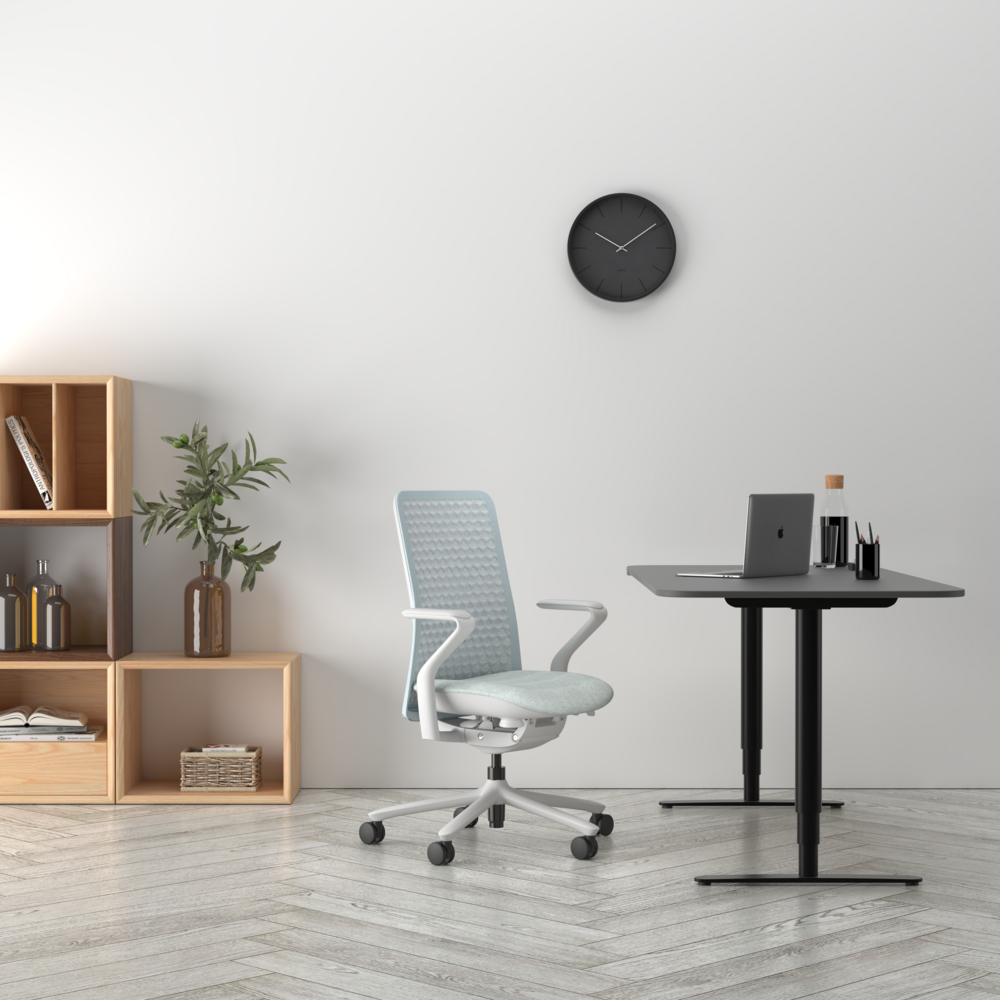 De Poly is ontworpen om jou de regie te geven over je zithouding. Dankzij het synchroonmechaniek met vijf standen bepaal je zelf hoeveel de rugleuning meebeweegt wanneer je achterover leunt. Liever stabiel zitten? Dan vergrendel je het mechaniek in één van de drie vaste posities, waaronder een volledig rechte stand. In combinatie met de verstelbare zitting, lendensteun en armleuningen biedt de Poly een ergonomische zitervaring die de hele dag comfortabel blijft. Deze bekroonde designstoel is ontworpen door Yves Béhar.