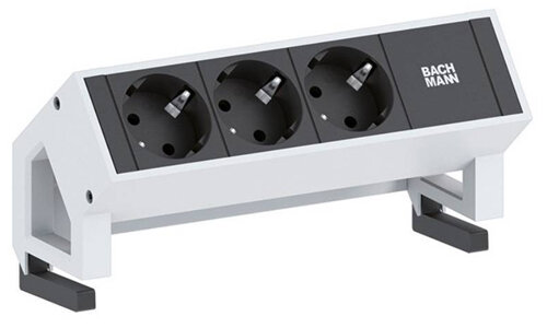 De smaakvol vormgegeven Desk 2 van de firma Bachmann, is een zeer solide desktop unit. De meegeleverde bevestigingsbeugels, verwerkt in de eindkappen links en rechts, zorgen voor een oersterke montage op ieder bureaublad met een maximale dikte van 50 mm. Deze opbouwunit wordt standaard geleverd met een 230V aansluitsnoer van 20 cm voorzien van een Wieland GST18-3-connector. Aansluitsnoeren in verschillende lengten kunnen apart besteld worden. Alle overige aansluitingen waaronder data, HDMI, USB 3.0 en audio zijn bus – bus verbindingen. Dit betekent dat u zonder gereedschap simpelweg de aansluitingen realiseert met prefab kabels.