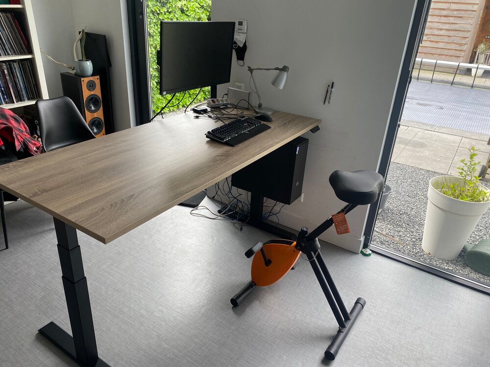 Nu een sta bureau gekocht met 's ochtend en 's middags een uur fietsen. Wel even wennen om alles tegelijk te doen, maar gaat echt iedere dag beter. Fiets nu iedere dag vanaf januari en wil niets anders meer.