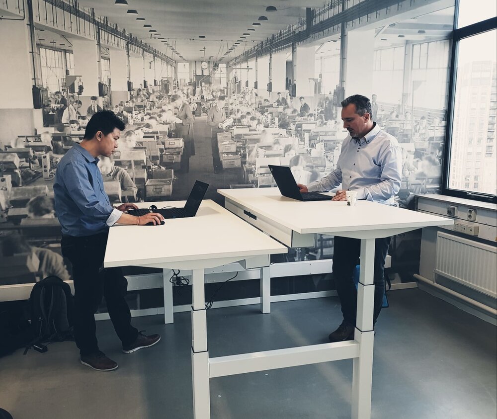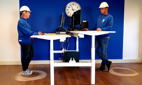 Worktrainer werkt voor de montage van zit-sta bureaus en het verzenden van pakketten samen met Ferm Werk, een sociale werkmaatschappij die mensen met een afstand tot de arbeidsmarkt ondersteunt.