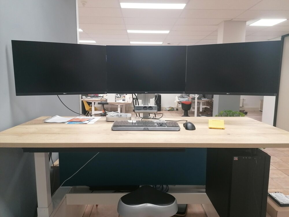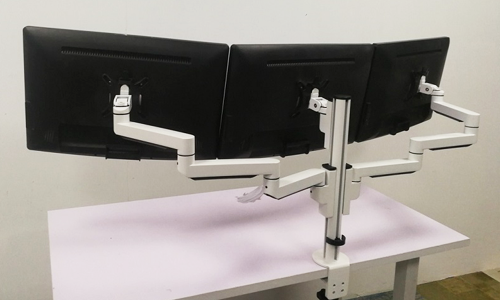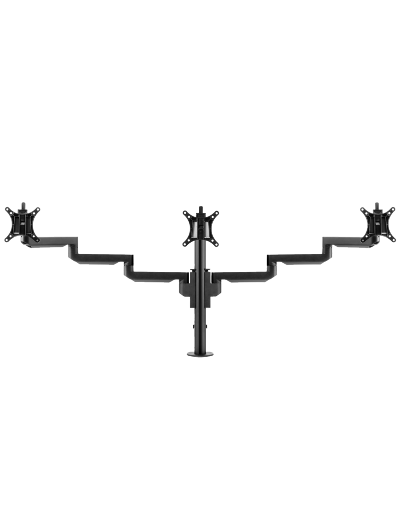 Inclusief: Post 45cm, bladklem, bladdoorvoer, 3 stuks in hoogte verstelbare Connectoren/Sliders, 6 stuks rechte statische armdelen 24cm, 3 stuks VESA plaat met connector incl. quick release