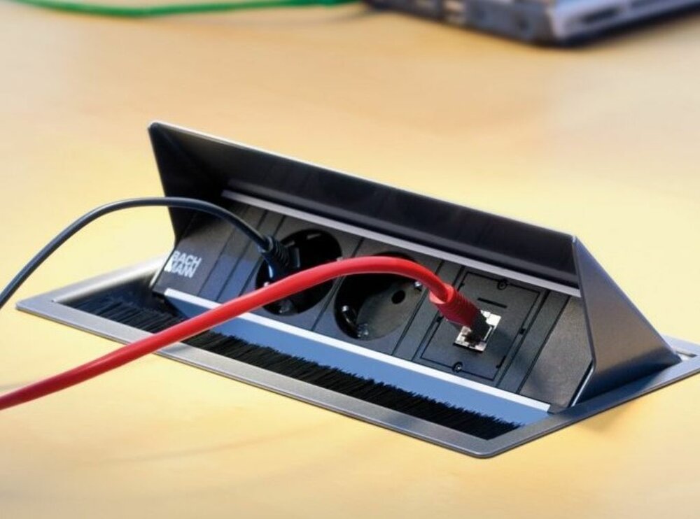 De Coni is een elektrificatie inbouwmodule voor jouw bureau, voorzien van een klapdeksel en borstelafsluiting aan de voorzijde. Je kunt de Coni geheel naar wens samen te stellen met stroom, data en multimedia aansluitingen.