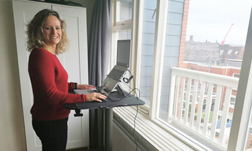 Worktrainer werkt voor de montage van zit-sta bureaus en het verzenden van pakketten samen met Ferm Werk, een sociale werkmaatschappij die mensen met een afstand tot de arbeidsmarkt ondersteunt.