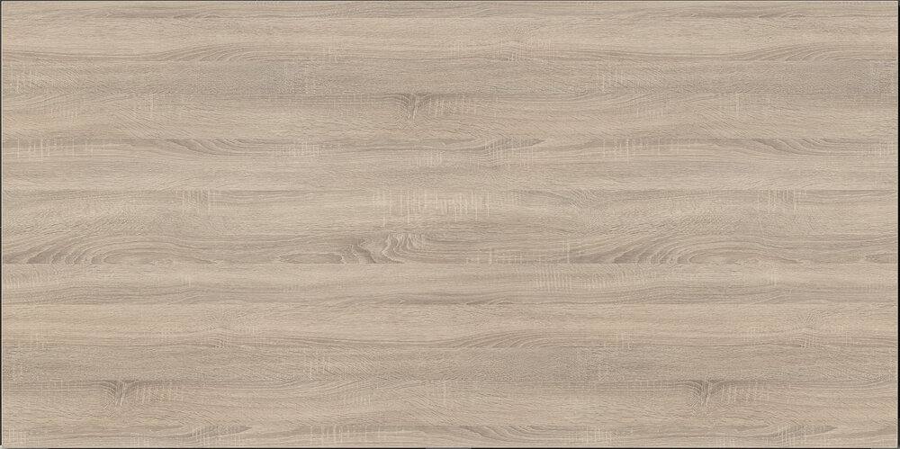 Een mix van lichtgrijze en bruine tinten met een lichtbruine houtstructuur. Het werkblad heeft een licht reliëf. De werkbladen hebben geen schroefgaten en zijn aan beide zijden gekleurd.