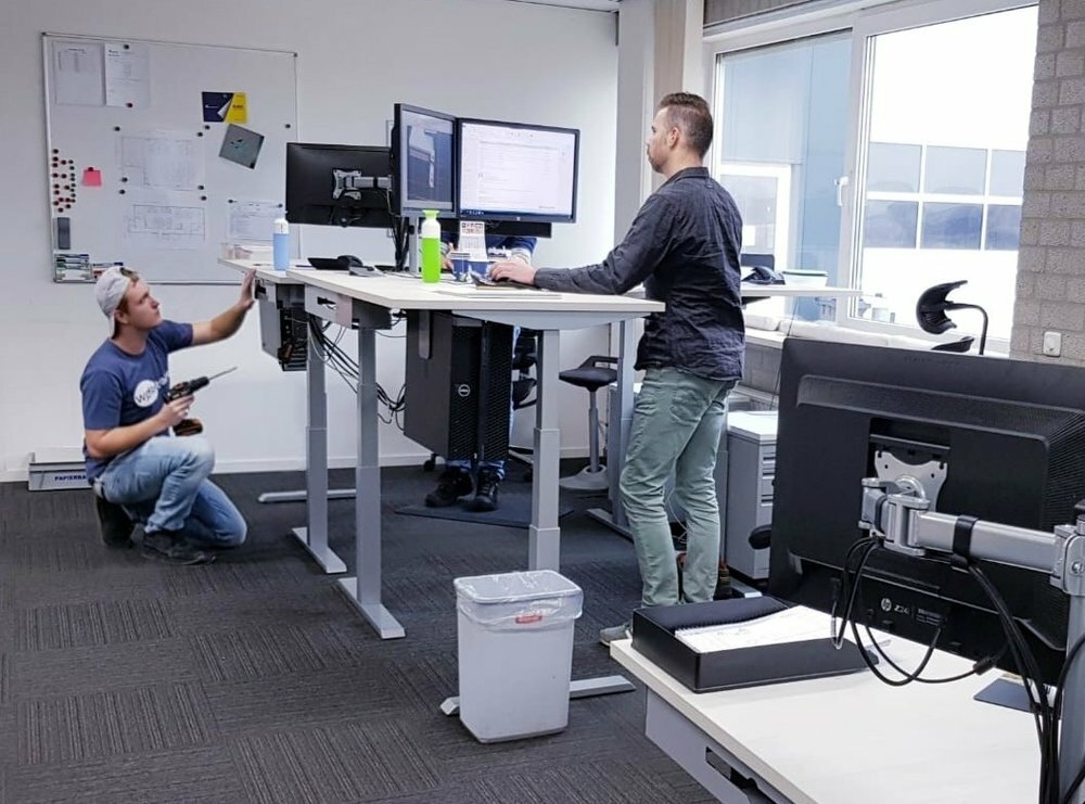 Worktrainer werkt voor de montage van zit-sta bureaus en het verzenden van pakketten samen met Ferm Werk, een sociale werkmaatschappij die mensen met een afstand tot de arbeidsmarkt ondersteunt.
