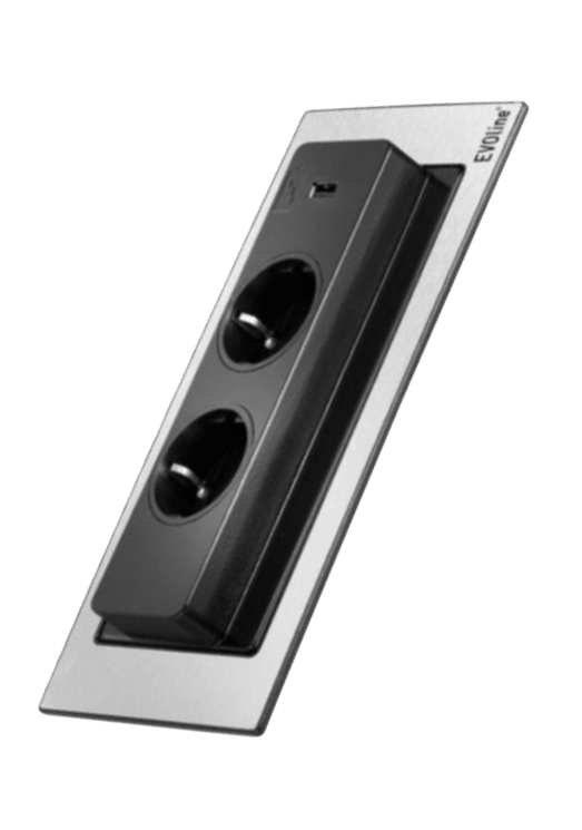 Maak je werkplek nog moderner door de Evoline stekkerdoos te integreren in je bureau. Deze Evoline Back Flip is een inbouwmodule die met één vingerdruk 180 graden open draait. Deze Back Flip stekkerdoos heeft een lage inbouwdiepte van slechts 53 mm.
