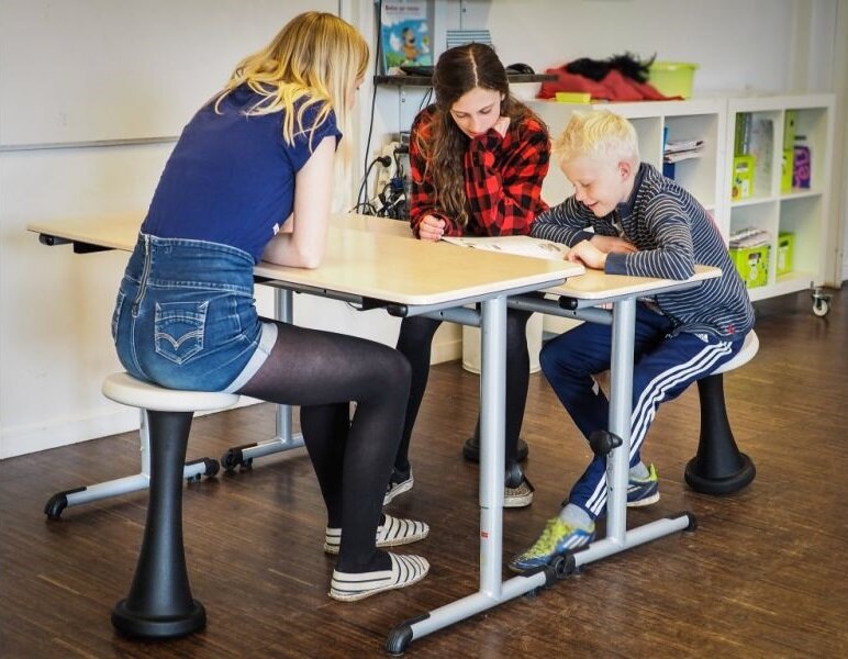 Docenten kunnen met de OneLeg op dezelfde hoogte werken als de leerlingen en door de flexibele beweegmogelijkheden kan de docent snel van positie veranderen. De kruk is licht in gewicht en makkelijk te verplaatsen.