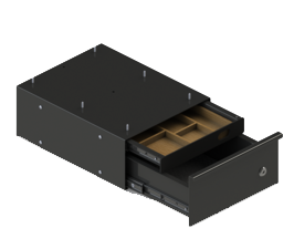 The top drawer has a drawer insert with compartments made out of bamboo,with which small items such as pens and paper clips can be neatly stored. This pen drawer is lockable, strong and easy to mount under your worktop. The Pen Drawer Duo is available in white, black and silver.