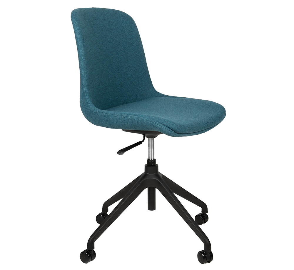 The sturdy 660 mm black base provides stability and comes standard with glides, with castors available as an option. Designed for intensive use, the Swing supports up to 150 kg and features an SGS-certified gas lift. Available in grey and dark blue, with other colours available on request (from 100 pcs and up).