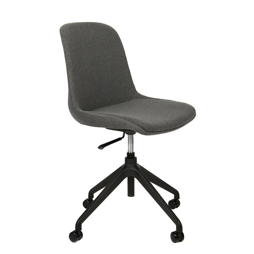 Meet the Swing: a stylish and comfortable chair from our latest collection. Thanks to the height-adjustable gas lift, you can easily set the seat to the perfect height for working, studying or relaxing. Its clean design and premium finish make the Swing a perfect fit for any interior. The seat shell is upholstered in durable, fire-retardant Julie fabric with a modern wool-felt look, offering excellent seating comfort.