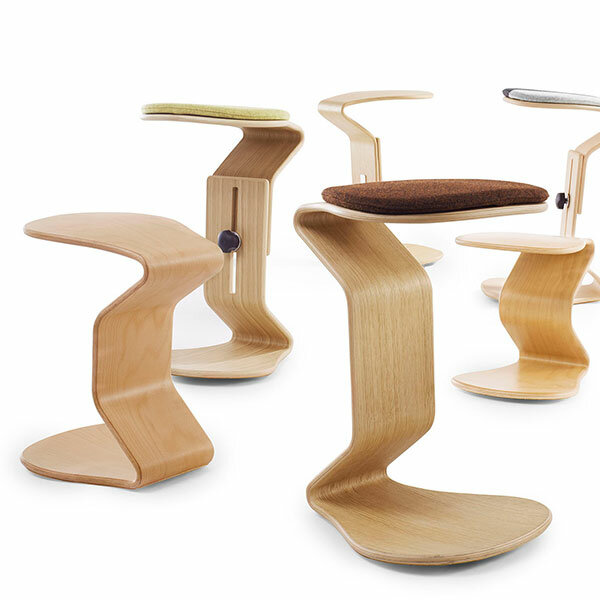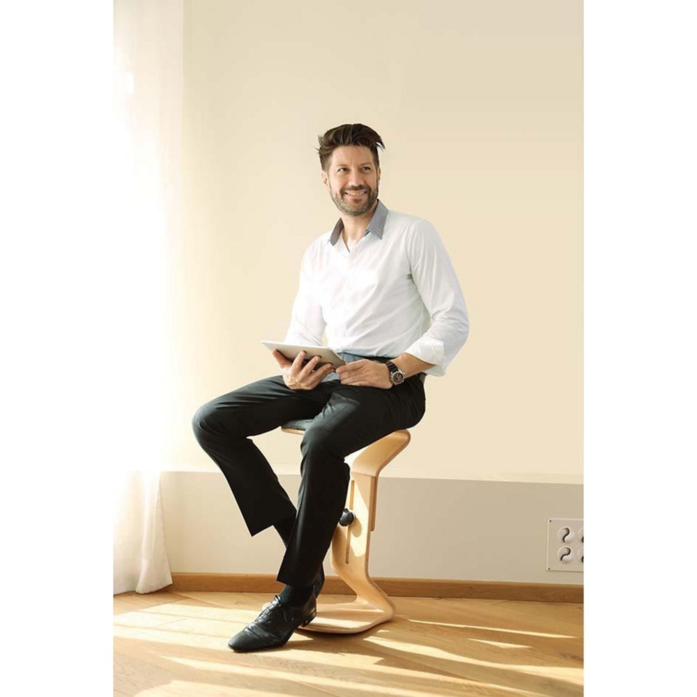 Verstelbare designkruk van FSC-beukenhout met wollen bekleding. Stimuleert actief zitten, vermindert rugklachten en verhoogt concentratie. Ideaal voor thuiswerken.