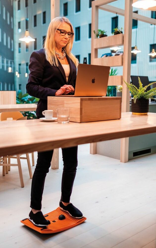 Deze slimme accessoire voor je werkplek is niet zomaar een plank; dankzij de gepatenteerde kruisflexibiliteit kun je ook een loopbeweging maken op het board.