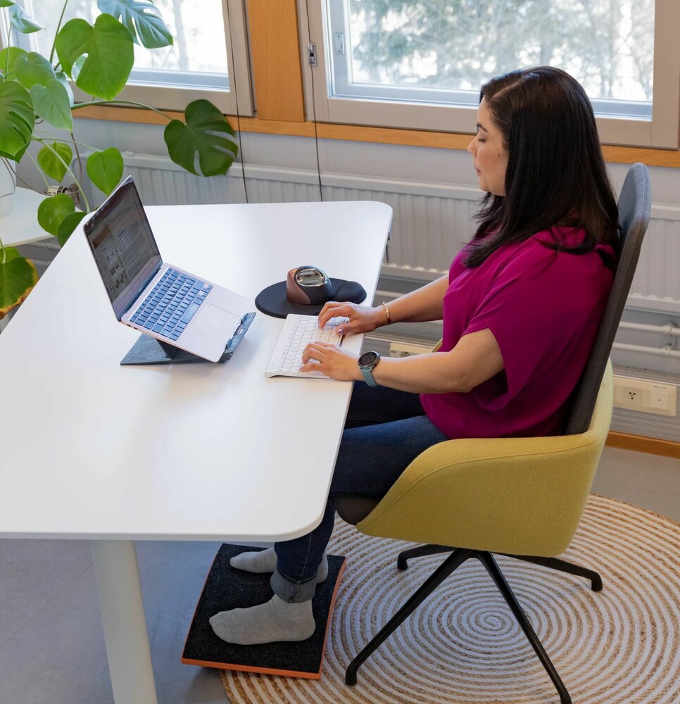 Bekijk in de video's hoe je de Gymba balance board achter je werkplek gebruikt.