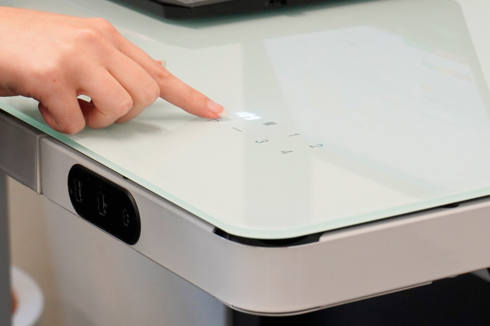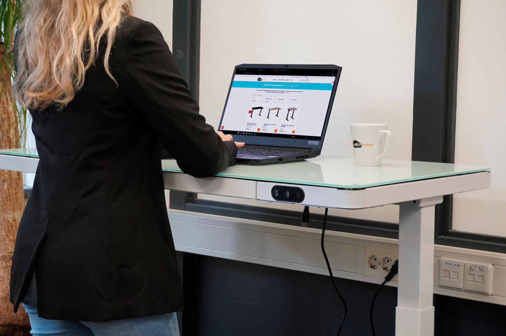 Het glazen werkblad maakt dit bureau extra bijzonder. Het is stevig, strak en beschrijfbaar met een whiteboardmarker, zodat je je ideeën meteen kunt noteren. Na afloop veeg je het blad schoon en begin je weer met een frisse lei. De bediening voor de hoogteverstelling is slim verwerkt in het blad, waardoor het design minimalistisch en opgeruimd blijft.