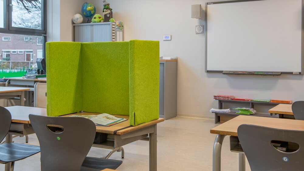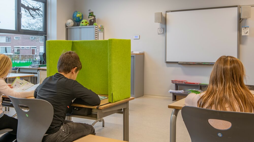 In een klaslokaal kan het soms flink rumoerig zijn. Kinderen raken snel afgeleid door geluiden en bewegingen om hen heen. Voor een goede leeromgeving is het belangrijk om deze prikkels te beperken.