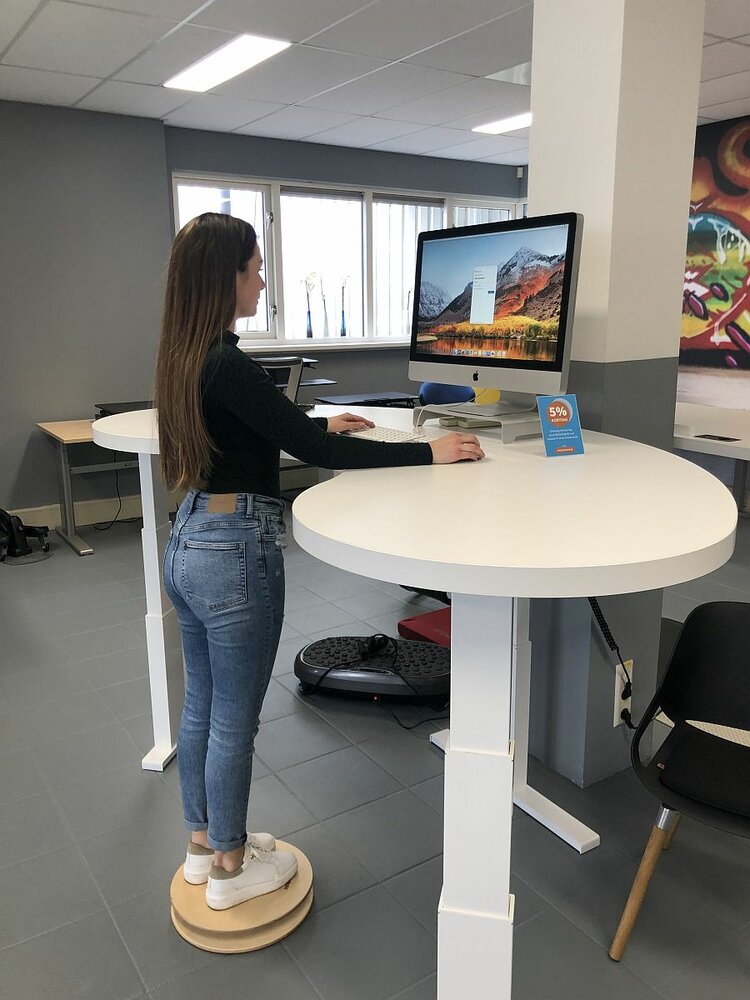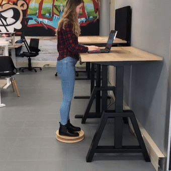 Werken met een balance board kan ervoor zorgen dat je beenspieren sterker en stabieler worden, doordat je je vasthoudt aan het sta bureau kun je aan het werken op een balansbord wennen.