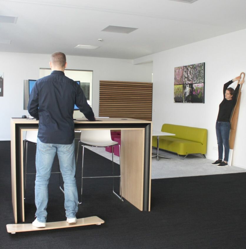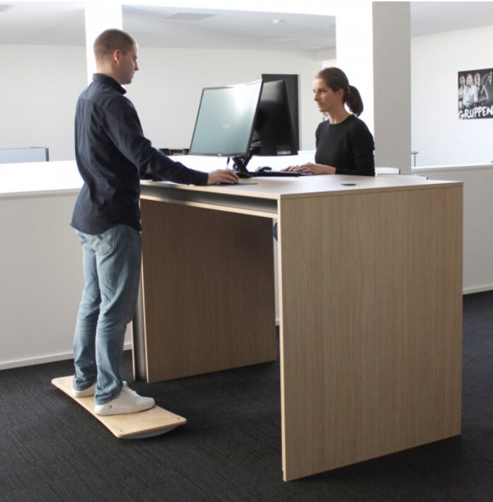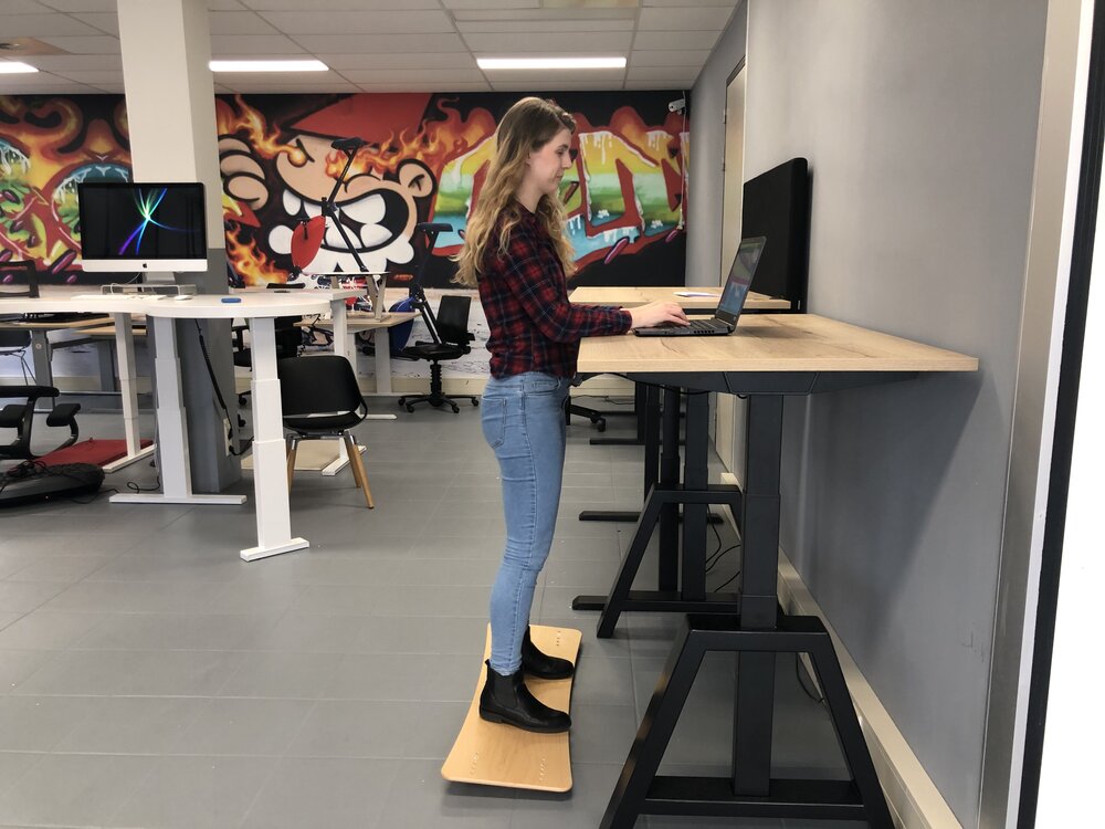 Werken met een balance board kan ervoor zorgen dat je beenspieren sterker en stabieler worden, doordat je je vasthoudt aan het sta bureau kun je aan het werken op een balansbord wennen.