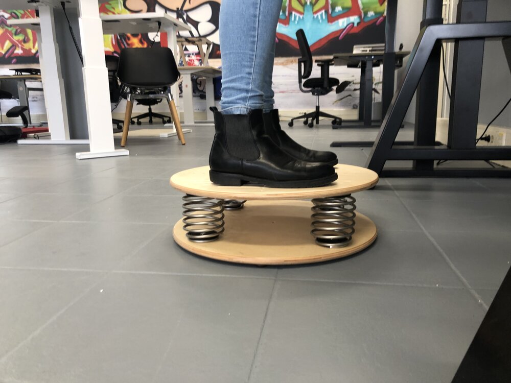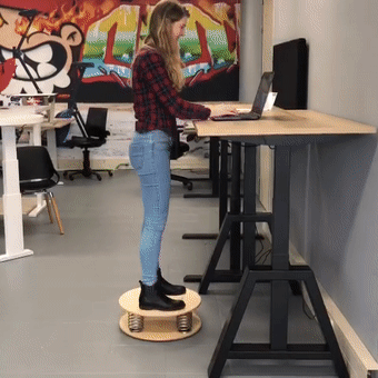 Als je op een balansbord staat, ben je jezelf steeds aan het corrigeren om balans te houden. Zo sta je actief tijdens je werk en train je tegelijkertijd je bovenlichaam en beenspieren. Direct actie, simpel en effectief!