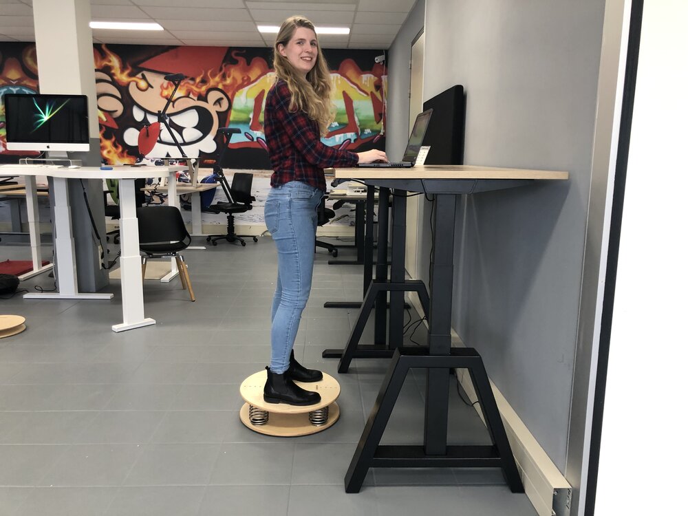Werken met een balance board kan ervoor zorgen dat je beenspieren sterker en stabieler worden, doordat je je vasthoudt aan het sta bureau kun je aan het werken op een balansbord wennen.