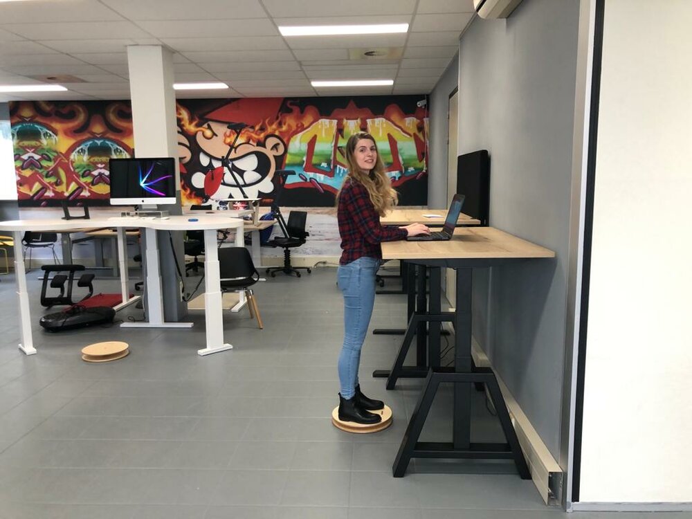 Werken met een balance board kan ervoor zorgen dat je beenspieren sterker en stabieler worden, doordat je je vasthoudt aan het sta bureau kun je aan het werken op een balansbord wennen.