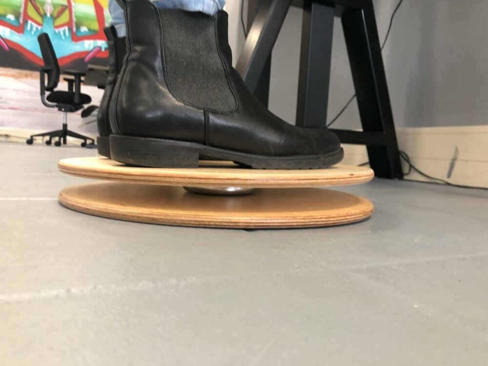 Als je op een balansbord staat, ben je jezelf steeds aan het corrigeren om balans te houden. Zo sta je actief tijdens je werk en train je tegelijkertijd je bovenlichaam en beenspieren. Direct actie, simpel en effectief!