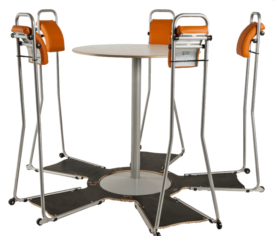De Stand4Work vergaderset wordt gebruikt om de dag gedeeltelijk staand door te brengen op je werk, maar ook tijdens vergaderingen (stand-up meetings), in wachtruimtes en in de kantine tijdens pauzes biedt Stand4Work een uitkomst.