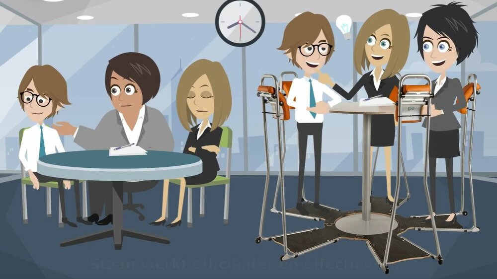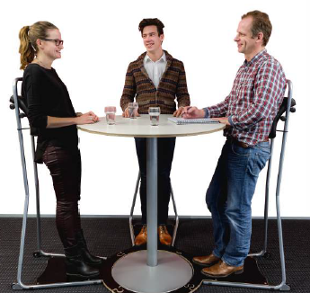 Efficient en productief vergaderen? Stand-up-Meetings! Een doelgerichte en vlotte vergadering, zonder collega’s die knikkebollen en gapen in hun stoel? Kom uit die standaard stoel en ga actief vergaderen! Een ‘stand up meeting’ gaat volgens onderzoek 34% sneller dan vanuit een zittende vergadersetting, stimuleert de doorbloeding in ons brein en zorgt voor alerte en productieve collega’s. Veeg suffe vergaderingen van tafel en kom in beweging met onze actieve vergadersets!