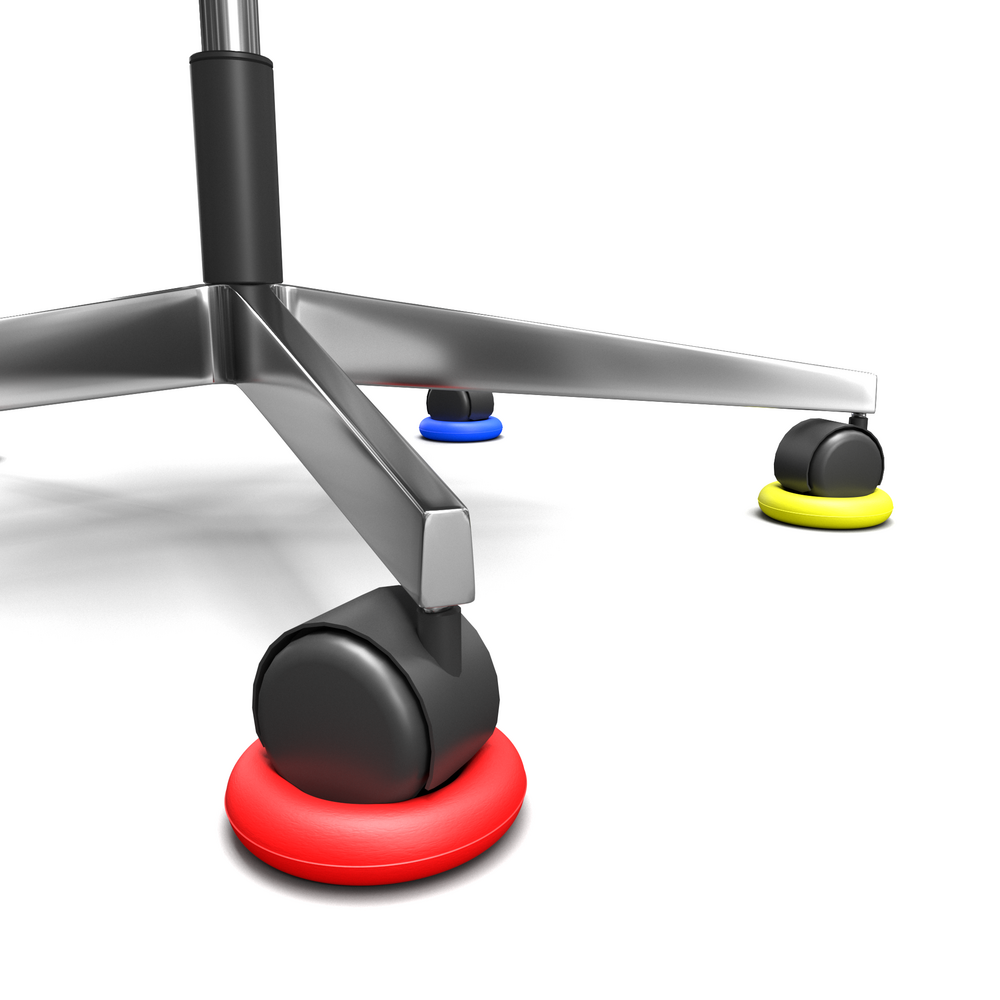Om te voorkomen dat je bureaustoel wegglijdt, terwijl je je afzet met de trappers van de Stepper, kun je een Anti-slip ring bij de Stepper bestellen voor onder het wieltje van je bureaustoel.