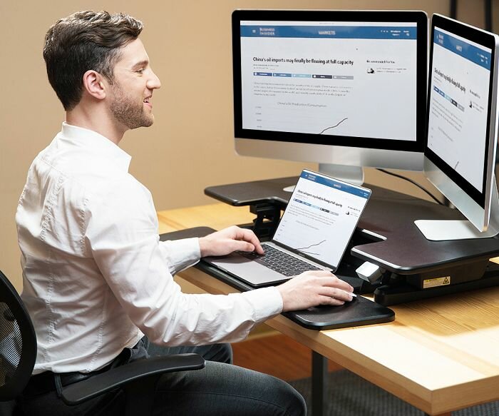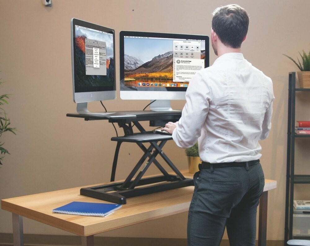 Zeer blij met deze bureau verhoger! Snel geïnstalleerd. Heel stevig. Eenvoudig te bedienen met de knopjes. Voldoende ruimte voor laptop + scherm + toetsenbord + muis en zelfs papieren indien nodig.