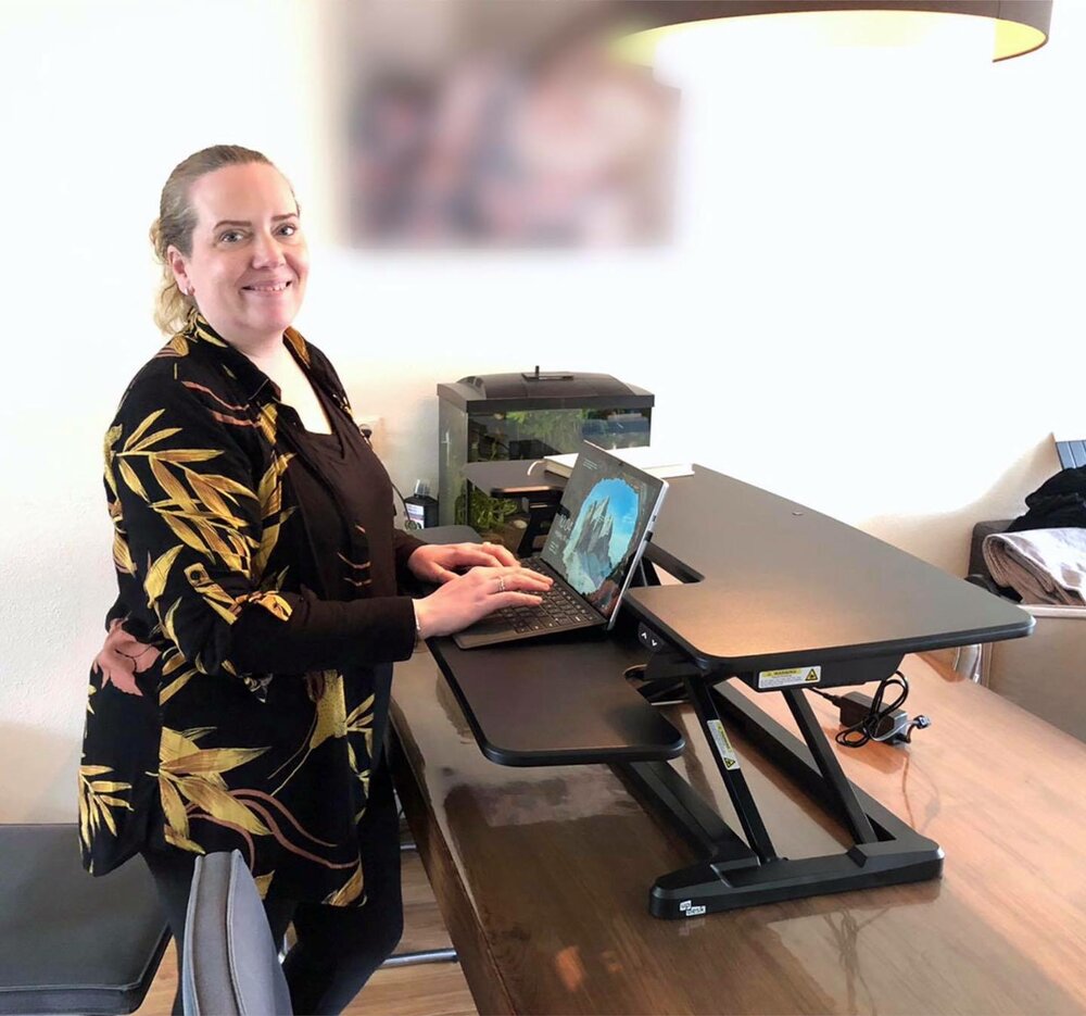 Het is in het begin even wennen om staand te werken. Ik zorg ervoor dat ik bepaalde werkzaamheden doe als ik ga staan. Ik ben er heel blij mee, ik heb er direct ook een voor thuis besteld.