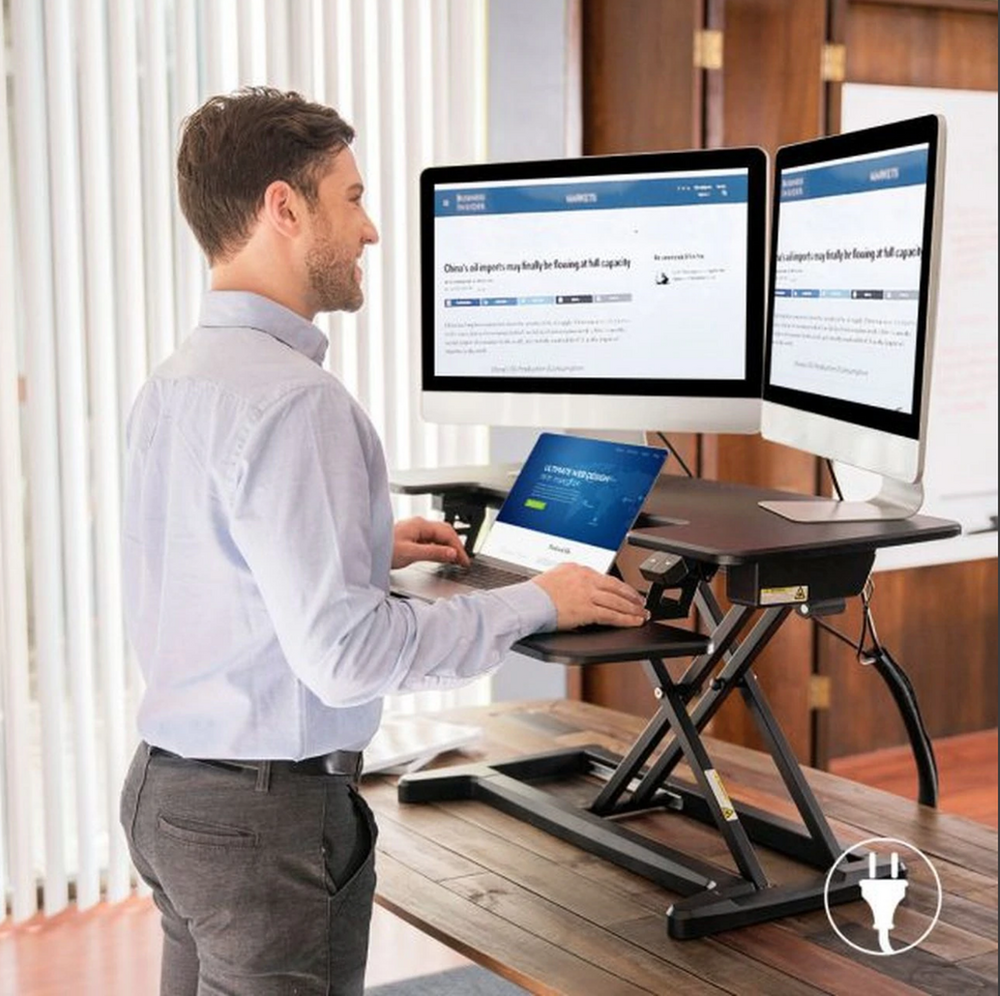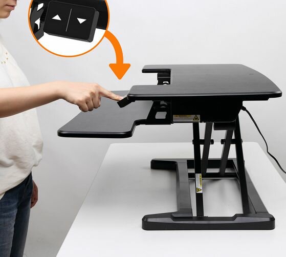 De elektrische updesk is perfect. Zonder enige moeite gaat het omhoog en omlaag naar de gewenste hoogte.