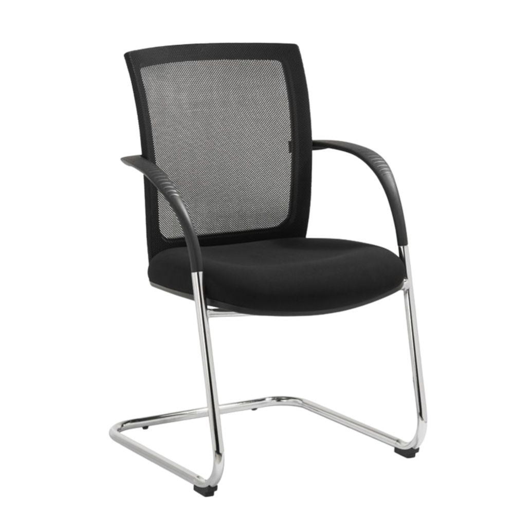 Comfortabele, stijlvolle stoel met zwarte bekleding en chrome sledeframe. Perfect voor vergader- en conferentieruimtes.