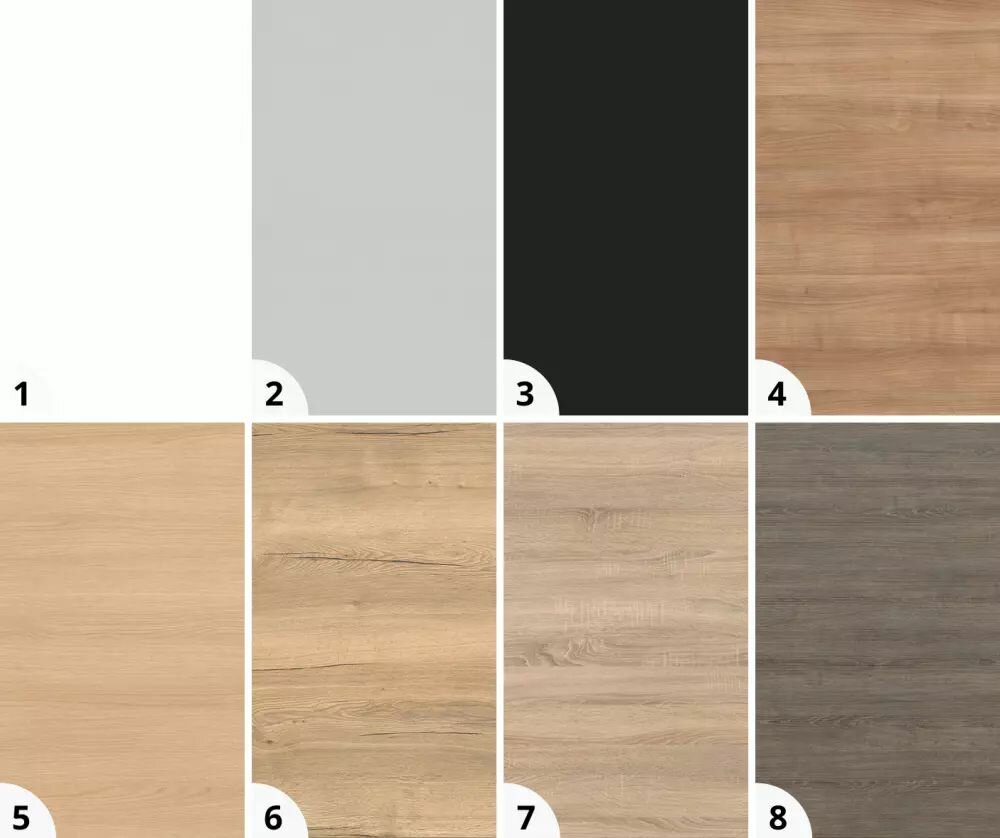 • Kleuren: âť¶ Wit âť· Licht grijs ❸ Zwart âťą Havanna âťş Licht eiken âť» Natuur eiken ❼ Midden eiken âť˝ Bruin eiken