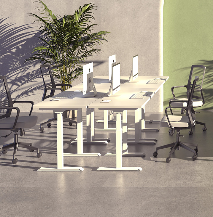 De Updesk Meet heeft drie krachtige motoren en een memory display voor je favoriete hoogtes. Het frame, beschikbaar in wit, zilver en zwart, is geschikt voor gebruikers van 1,50 meter tot 2,00 meter lang. De poedercoating is water- en vuilafstotend en het anti-collisie systeem biedt extra veiligheid. Kies uit twee werkbladvormen: Ton en Ovaal.