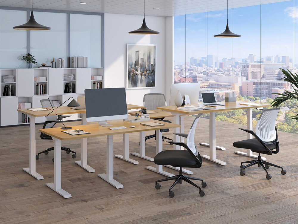 Er gaat een wereld voor je open met een zit-sta bureau. Je kunt nu op vele manieren je werk doen: ga staan, zitten, gebruik ander beweegmeubilair om mee te wiebelen of te fietsen. Je hele werkdag wordt één gezonde oefening door voldoende af te wisselen. Verhoog de productiviteit, verbrand calorieën en voorkom klachten.